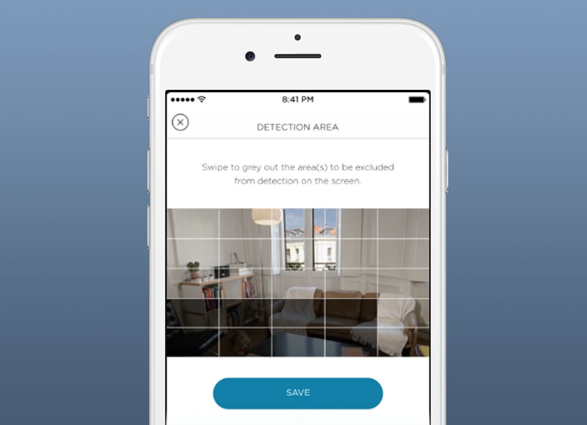 The unique combination of infrared-based motion sensor and motion detection ensures you receive highly accurate alerts straight to your smartphone. With selective detection you can also easily exclude parts of your room you don’t want to protect, like your dog’s favourite sofa. Simply swipe over the area you want ignore and secure only what matters: your windows, doors, and other critical spaces.